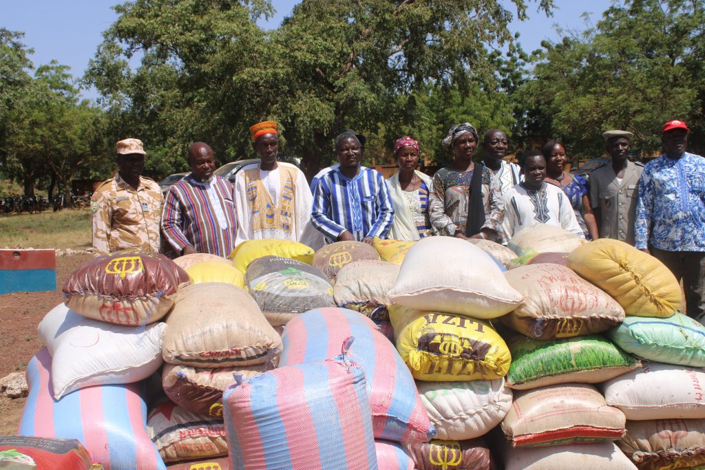 Avant la remise des vivres et des engins roulants, forces combattantes et civiles ont communié autour d’un cross populaire Debout comme un seul homme face à l’adversité, l’hymne national a été étonné
