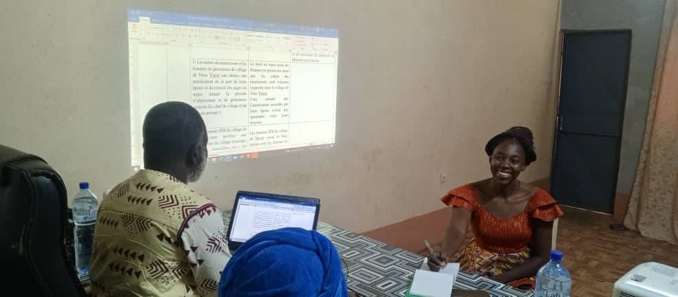 Séance de travail avec la coordonnatrice, Edwige Tankoano, dans une ambiance bon enfant